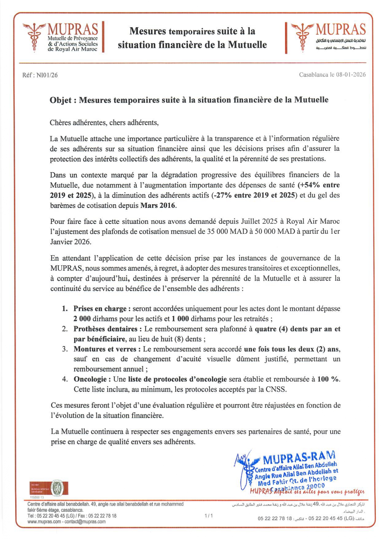 Articles Mesures temporaires suite à la situation financière de la Mutuelle 8 janvier 2026 Publié par : MUPRAS 08 Jan