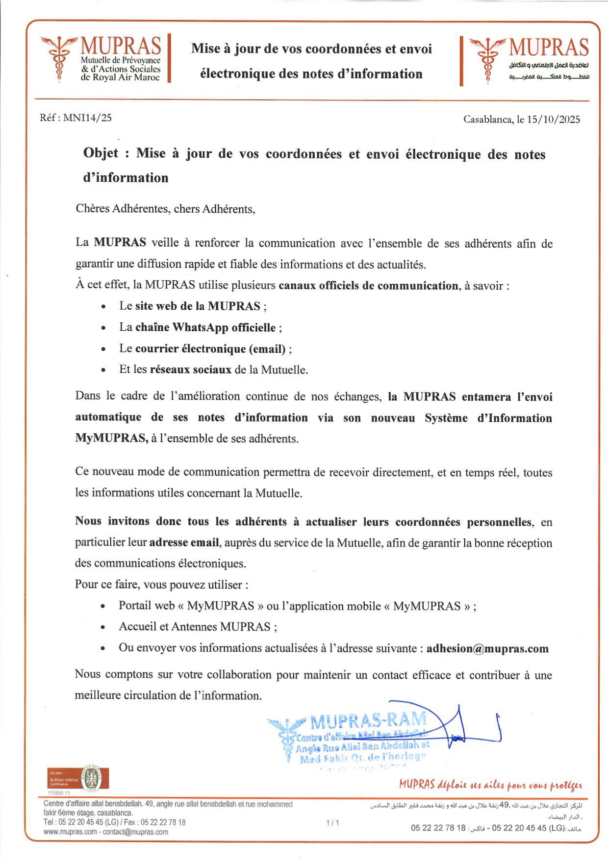 La MUPRAS est la première mutuelle marocaine à obtenir la certification ISO 9001 V2015 pour l'ensemble de ses activités.